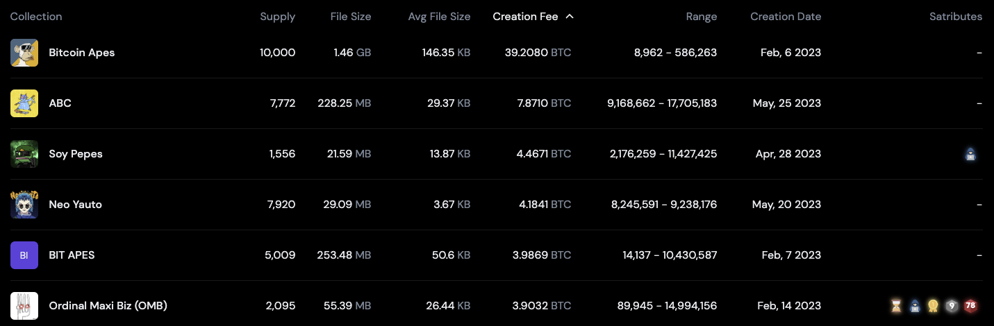 A snapshot of Bitcoin NFTs and their network fees showing increased miner revenue
