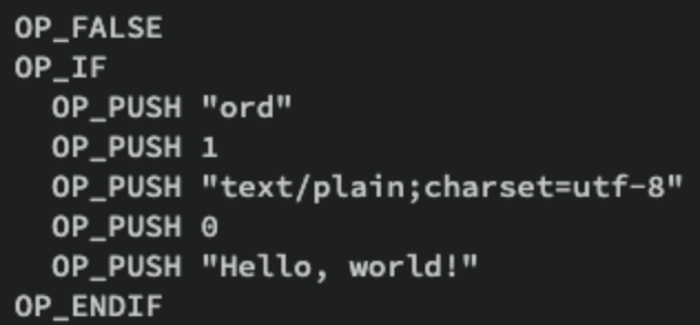 A text inscription example showing "Hello, world!" stored on Bitcoin