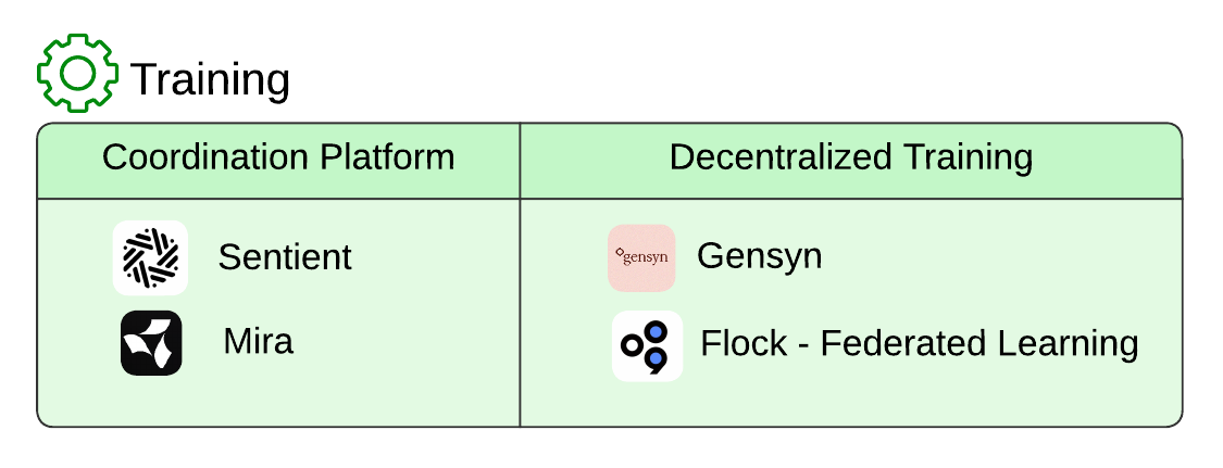 Projects focused on decentralized training, contribution tracking, and model monetization